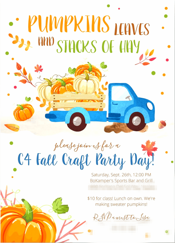 with the last C4 event waaaaay back in december 2019 (?!?!) this event was long awaited for to help us get over the covid blues. instead of numerous crafts we do for every event, we were limted to 2 at the max since it took place at a restaurant, where everyone had lunch on their own and treats from C4. the sweater pumpkins were a great hit, in fact, that the candle votive craft had to be taken home to be completed from some of the C4ers because we couldn’t get enough of making the squishy squooshy pumpkins! 🙂 nonetheless, our christmas event may be limited too so C4 is currently on the lookout for some fun, original, and easy-to-do kinda holiday craft that pleases everyone in a practical but fun way. remember, C4 is always open to any craft suggestions cuz in the art world, it is never ending on what we can create together!